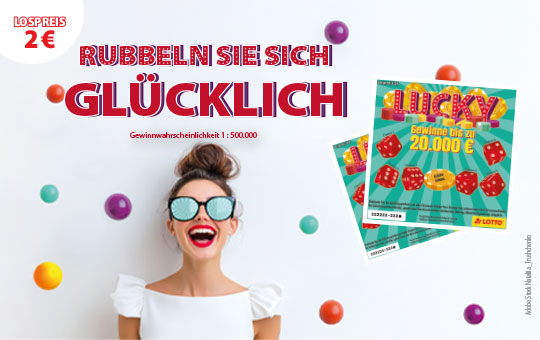 Der Hauptgewinn beim Lucky-Rubbellos beträgt 20.000 € (Chance 1:500.000). Mehrfachgewinne sind möglich. Der Lospreis beträgt 2 €.